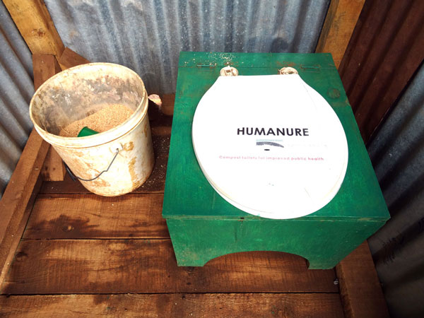 Always keep the toilet contents covered. If you’re using an adequate amount of appropriate cover material, your loo will be odor-free, as will your compost bin. If your nose picks up bad odors, or your eyes see flies, you’re not keeping the compost covered correctly. You need a nose that works and eyeballs that work to be able to manage a compost toilet system. A brain that works helps, too. A compost toilet is “the thinking person’s toilet.” Add more cover material if you smell anything. Make sure it’s fine enough and has residual moisture when covering your toilet contents. If it’s light and fluffy and dry like bagged wood shavings, it will not be as effective an odor blocker in your toilet, and you will need to use more of it, filling your loo receptacle too rapidly. Wet it down, and let it rot, even for years if needed; then use it for covering the toilet contents.